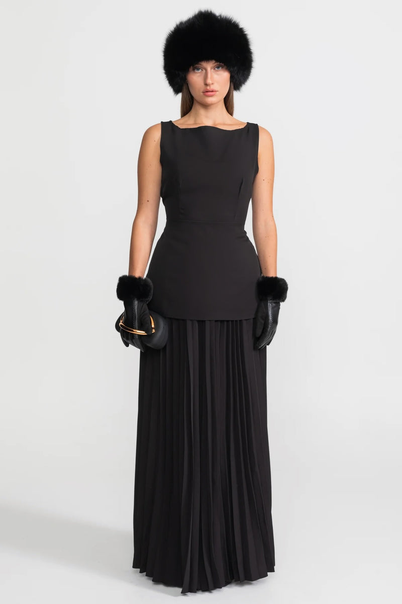 Sleeveless Maxi Co-Ord With Tailored Bodice And Pleated Skirt - Black
